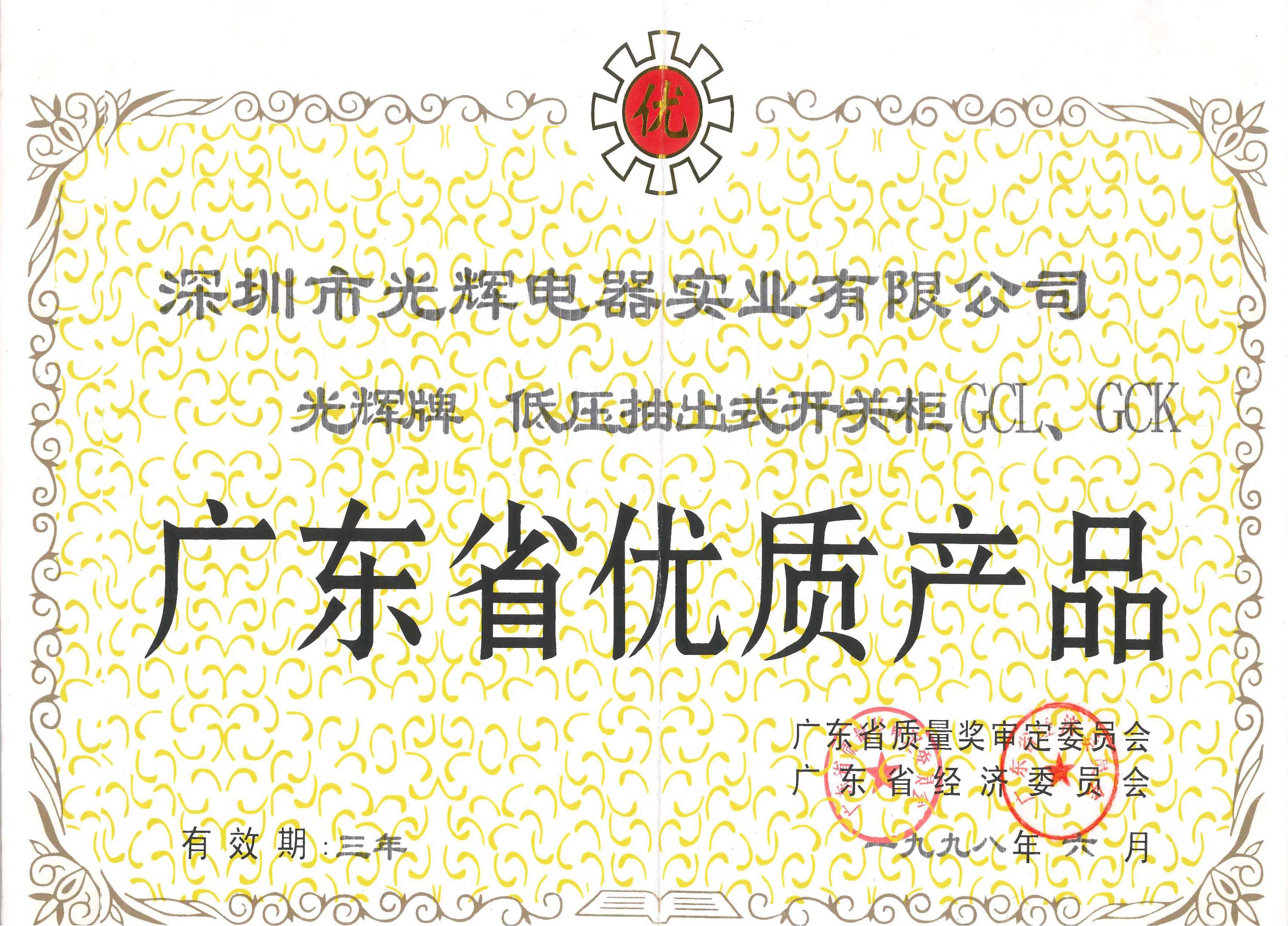 公司五種系列產(chǎn)品榮獲“廣東省優(yōu)質(zhì)產(chǎn)品”。