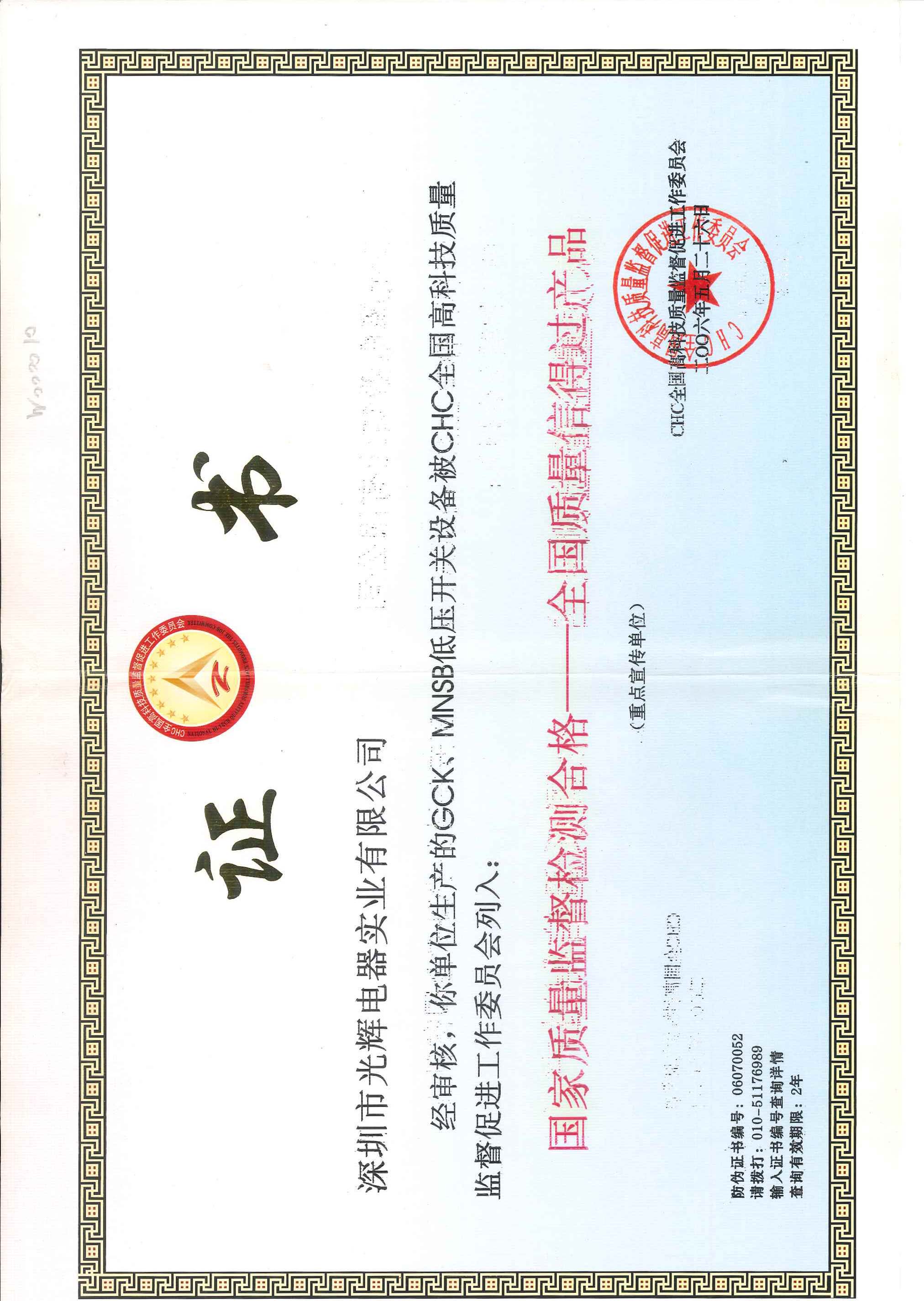 GCK、MNSB低壓開關(guān)設(shè)備被CHC全國(guó)高科技質(zhì)量監(jiān)督促進(jìn)工作委員會(huì)列入全國(guó)質(zhì)量信得過(guò)產(chǎn)品