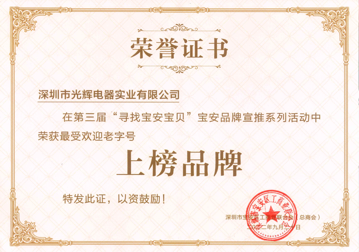 正式更名為深圳市光輝電器實(shí)業(yè)有限公司