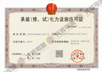 公司取得了三級(jí)“承裝 (修、試)電力設(shè)施許可證”證書。