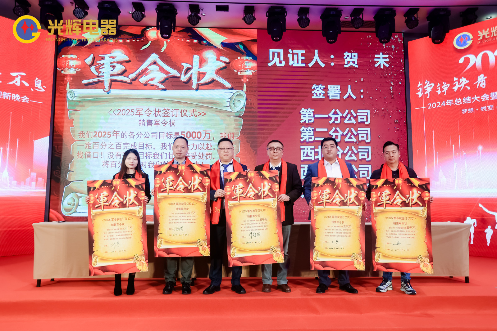 蓄勢待發,亮劍出鞘,光輝電器團隊以必勝的信念簽下軍令狀,各個負責人誓勇擔當,表達了光輝電器贏戰2025的決心,勇攀巔峰,全力沖刺年度目標!